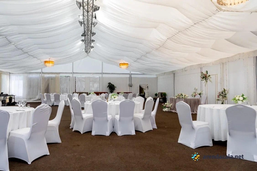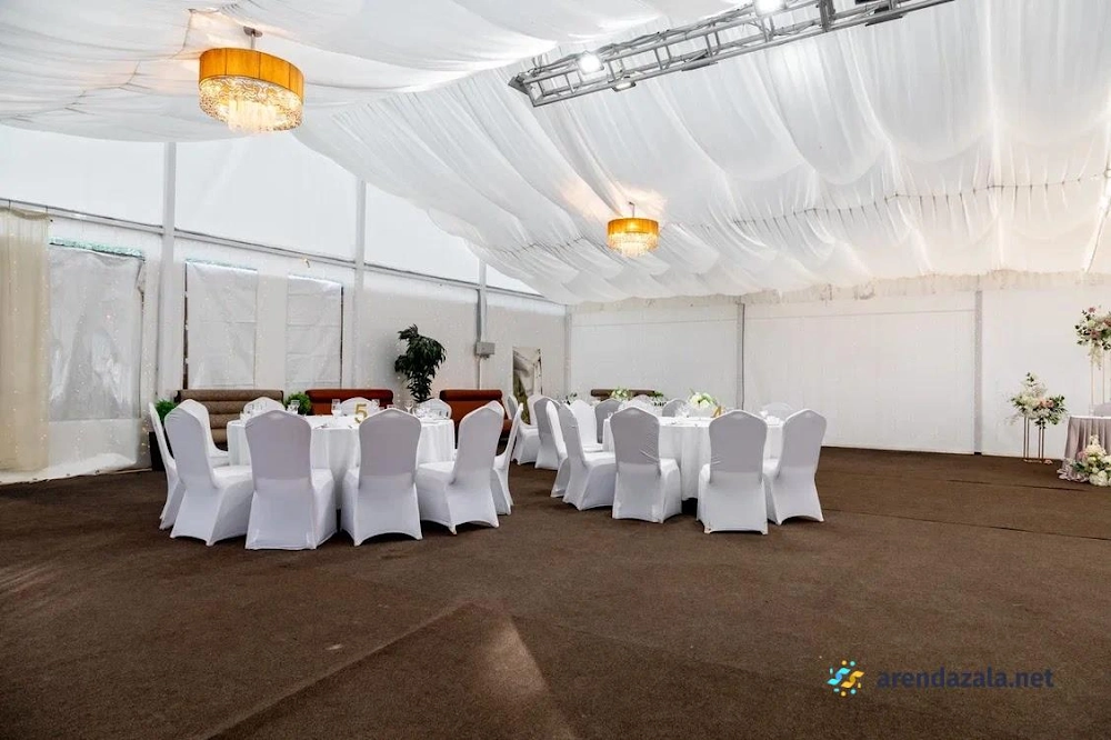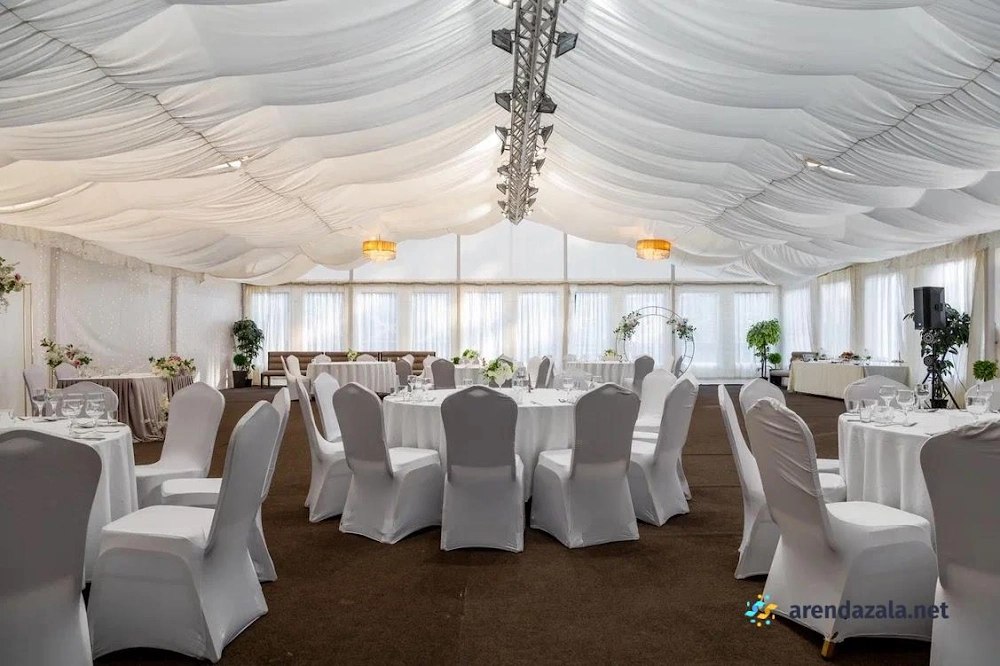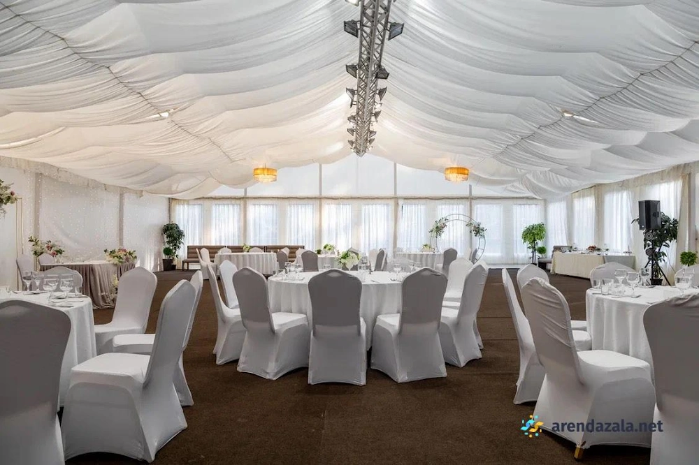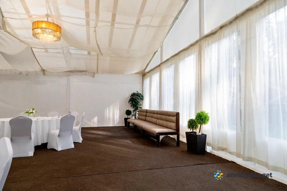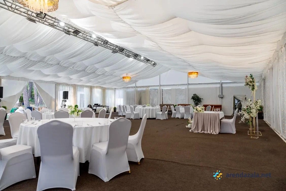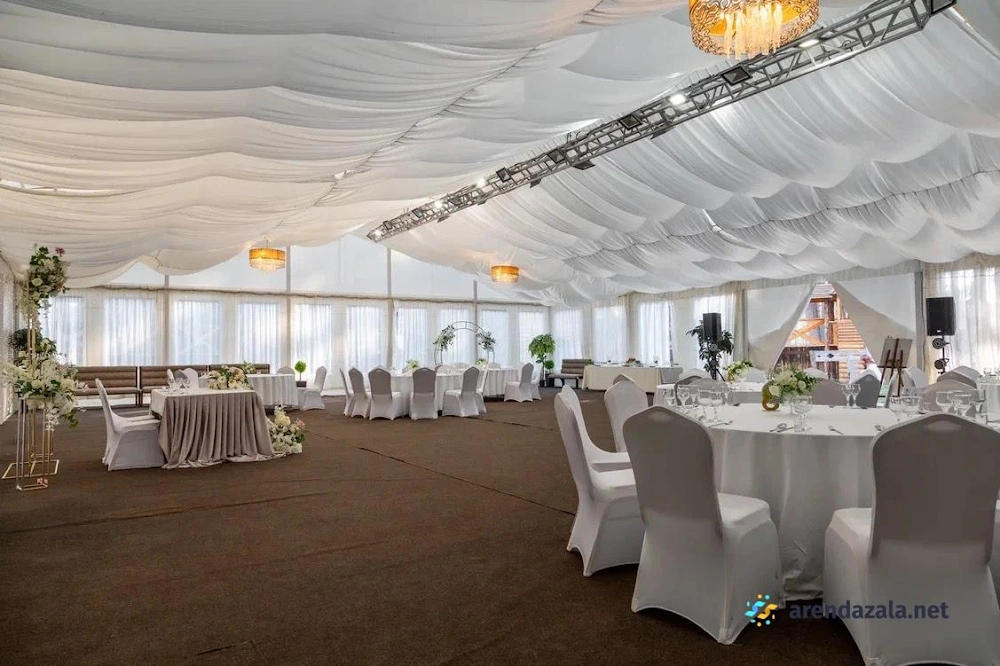 Банкетный шатер расположен в живописном месте, где гости могут насладиться активным отдыхом и вкусной едой. Посетителей встречает приветливый персонал, а на территории есть зона для волейбола, футбола и веревочный атракцион. Кухня предлагает вкусные и сытные блюда с большими порциями, и остатки можно забрать с собой. При этом в зоне бассейна поддерживается безупречная чистота, что создает комфортные условия для отдыха.