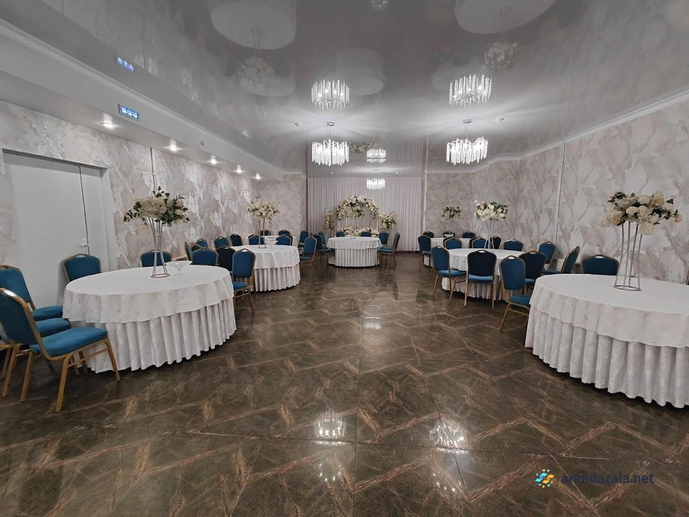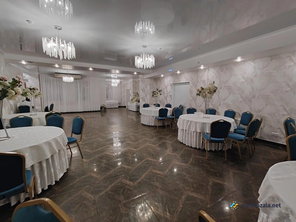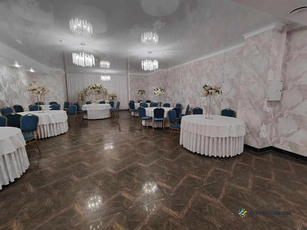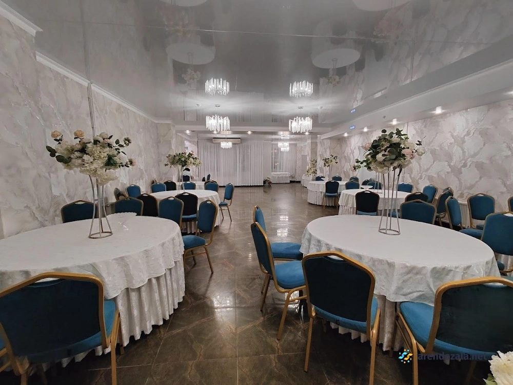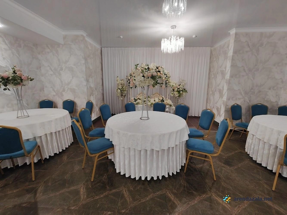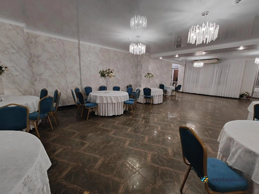 Заведение предлагает просторный и элегантно оформленный банкетный зал с круглыми столами, украшенными изящными накидками на стульях различных цветов. Интерьер создает атмосферу уюта и комфорта, а свободное пространство позволяет гостям свободно перемещаться и даже потанцевать. Кухня заведения получает высокие оценки за вкусные блюда и качественное обслуживание, что делает его подходящим местом как для торжественных мероприятий, так и для повседневного посещения в непринужденной обстановке.