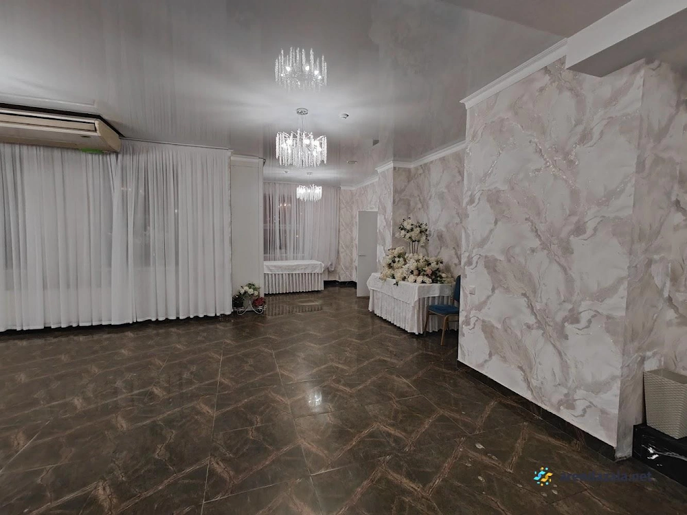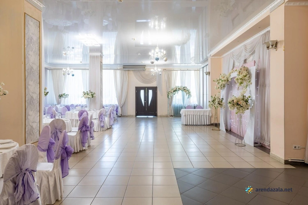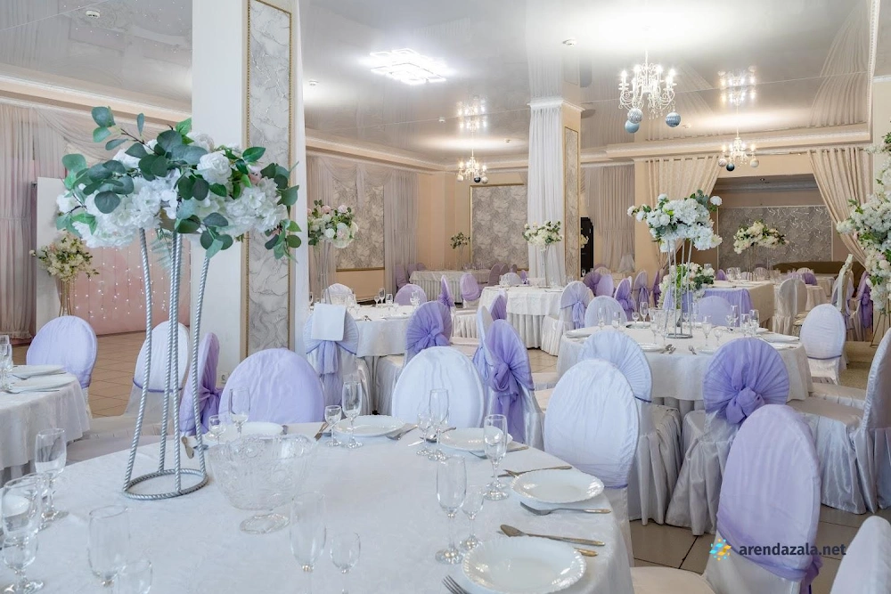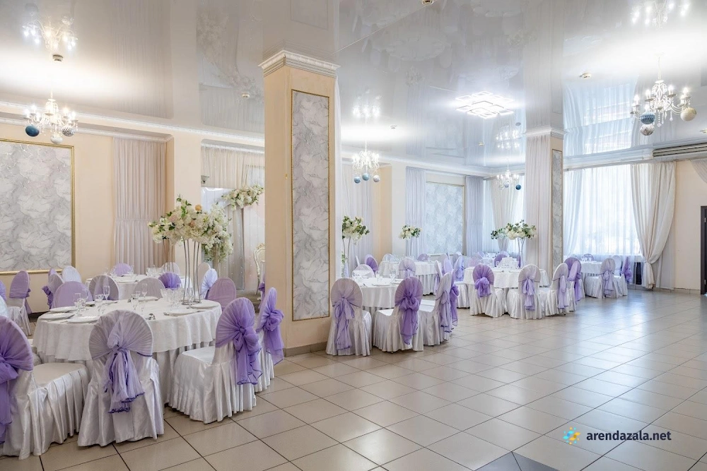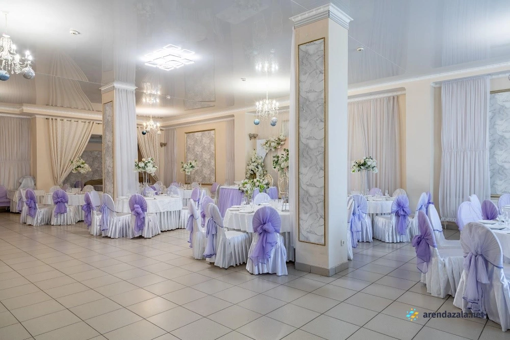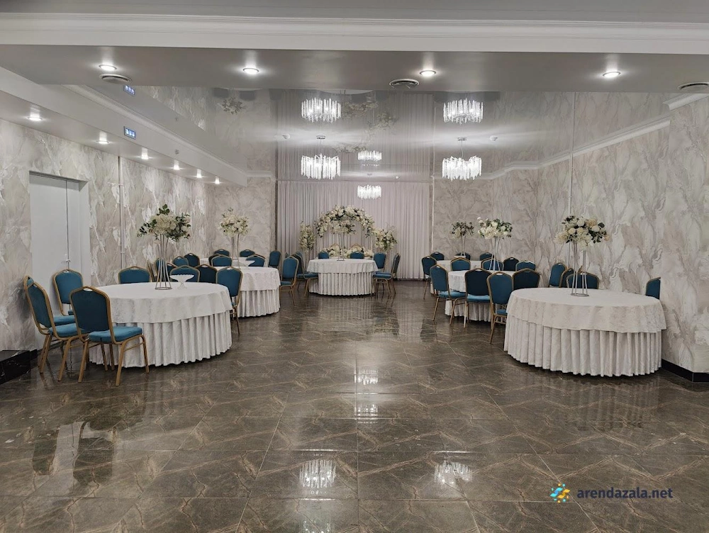 Заведение предлагает просторный и элегантно оформленный банкетный зал с круглыми столами, украшенными изящными накидками на стульях различных цветов. Интерьер создает атмосферу уюта и комфорта, а свободное пространство позволяет гостям свободно перемещаться и даже потанцевать. Кухня заведения получает высокие оценки за вкусные блюда и качественное обслуживание, что делает его подходящим местом как для торжественных мероприятий, так и для повседневного посещения в непринужденной обстановке.