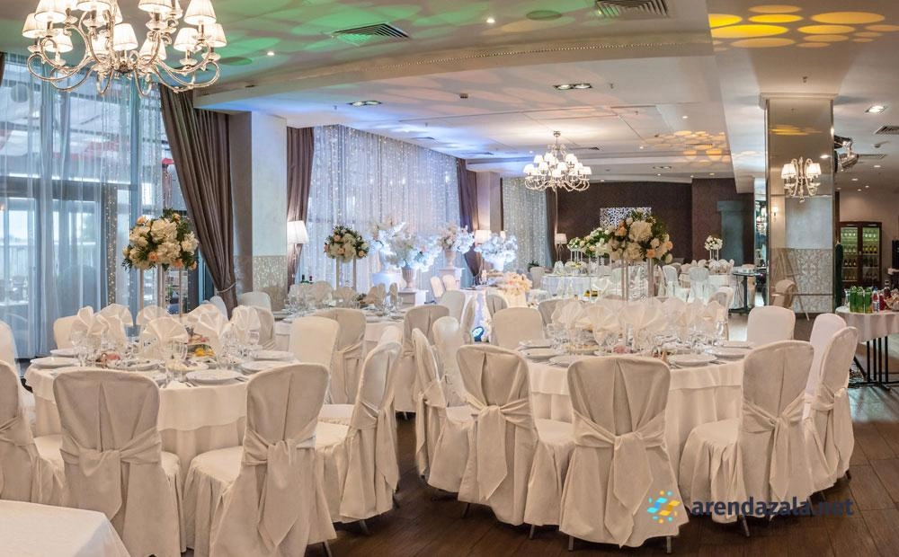 Заведение предлагает просторный и элегантно оформленный банкетный зал с круглыми столами, украшенными изящными накидками на стульях различных цветов. Интерьер создает атмосферу уюта и комфорта, а свободное пространство позволяет гостям свободно перемещаться и даже потанцевать. Кухня заведения получает высокие оценки за вкусные блюда и качественное обслуживание, что делает его подходящим местом как для торжественных мероприятий, так и для повседневного посещения в непринужденной обстановке.