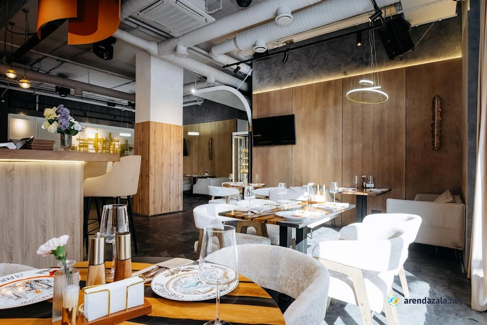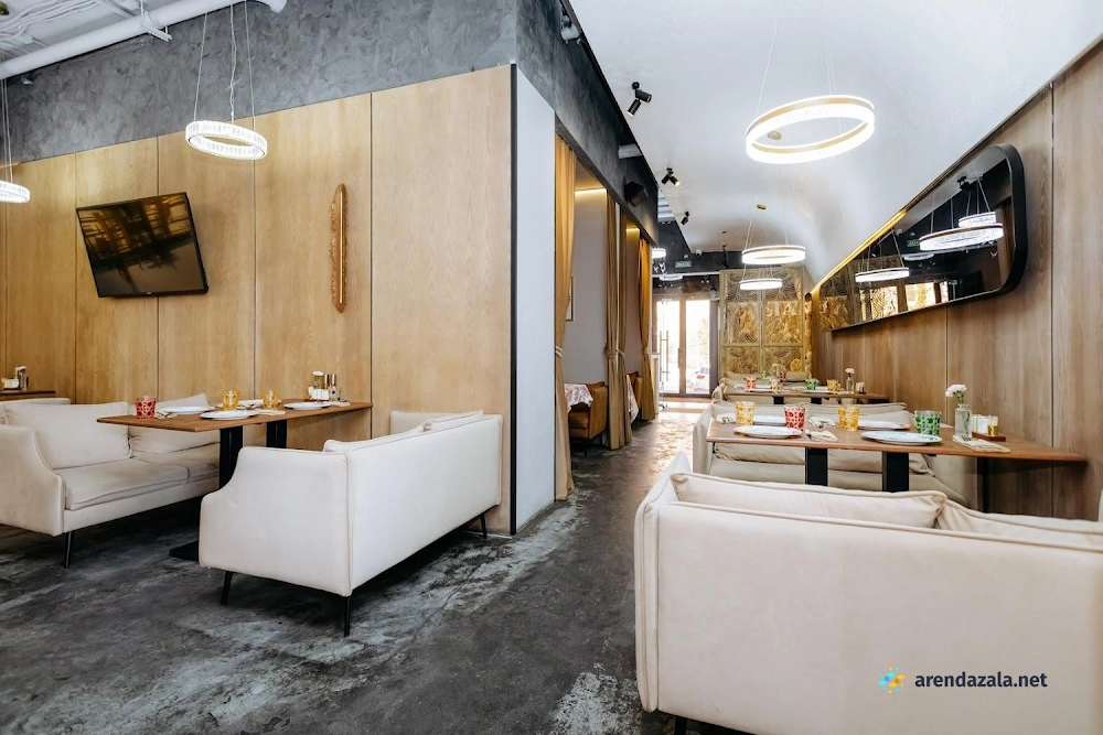 Заведение предлагает просторный и элегантно оформленный банкетный зал с круглыми столами, украшенными изящными накидками на стульях различных цветов. Интерьер создает атмосферу уюта и комфорта, а свободное пространство позволяет гостям свободно перемещаться и даже потанцевать. Кухня заведения получает высокие оценки за вкусные блюда и качественное обслуживание, что делает его подходящим местом как для торжественных мероприятий, так и для повседневного посещения в непринужденной обстановке.