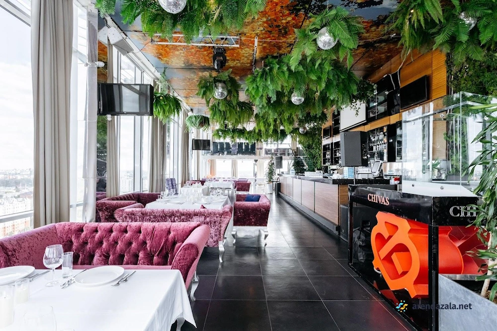 В элегантном ресторане на вершине небоскреба посетителей ожидает потрясающий панорамный вид на город, разнообразное меню с акцентом на рыбу и морепродукты, а также богатый выбор вин и коктейлей. Уютная атмосфера дополняется профессиональным обслуживанием вежливых и внимательных официантов, которые помогут сориентироваться в меню и проконсультируют по всем блюдам. Гостям предлагаются изысканные авторские блюда, такие как треугольники с уткой и баклажан со страчателлой, а также большой выбор кальянов. Этот ресторан станет идеальным местом как для деловых встреч, так и для романтического ужина.