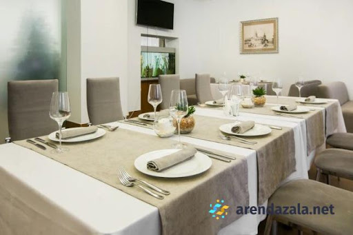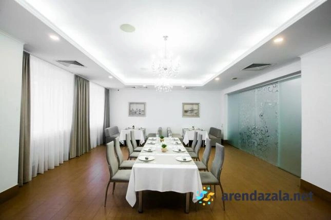 Заведение предлагает просторный и элегантно оформленный банкетный зал с круглыми столами, украшенными изящными накидками на стульях различных цветов. Интерьер создает атмосферу уюта и комфорта, а свободное пространство позволяет гостям свободно перемещаться и даже потанцевать. Кухня заведения получает высокие оценки за вкусные блюда и качественное обслуживание, что делает его подходящим местом как для торжественных мероприятий, так и для повседневного посещения в непринужденной обстановке.