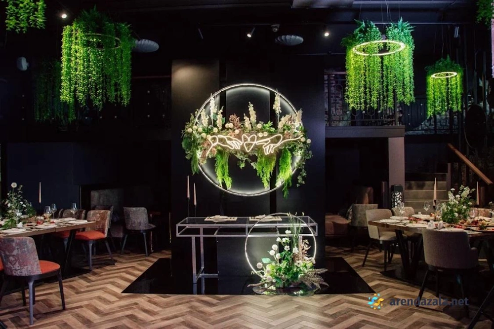 Заведение предлагает просторный и элегантно оформленный банкетный зал с круглыми столами, украшенными изящными накидками на стульях различных цветов. Интерьер создает атмосферу уюта и комфорта, а свободное пространство позволяет гостям свободно перемещаться и даже потанцевать. Кухня заведения получает высокие оценки за вкусные блюда и качественное обслуживание, что делает его подходящим местом как для торжественных мероприятий, так и для повседневного посещения в непринужденной обстановке.
