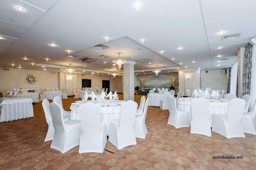 Заведение предлагает просторный и элегантно оформленный банкетный зал с круглыми столами, украшенными изящными накидками на стульях различных цветов. Интерьер создает атмосферу уюта и комфорта, а свободное пространство позволяет гостям свободно перемещаться и даже потанцевать. Кухня заведения получает высокие оценки за вкусные блюда и качественное обслуживание, что делает его подходящим местом как для торжественных мероприятий, так и для повседневного посещения в непринужденной обстановке.