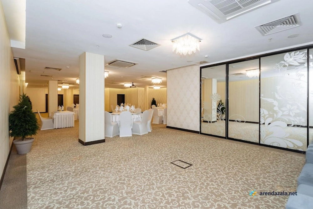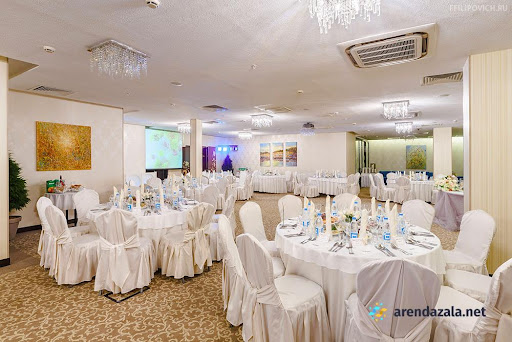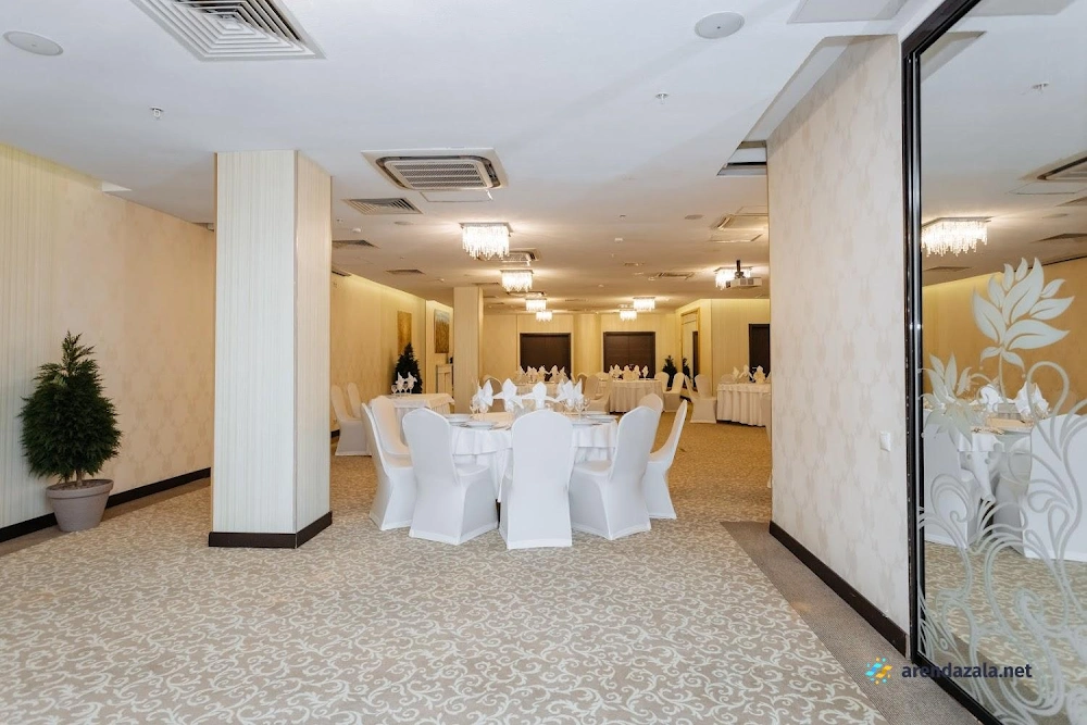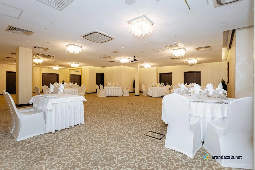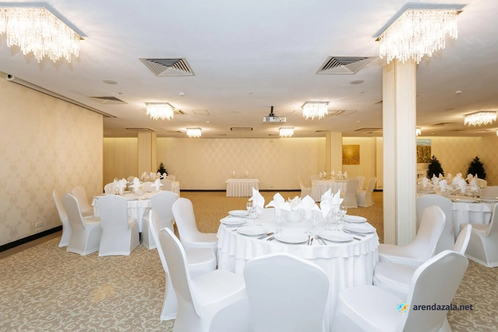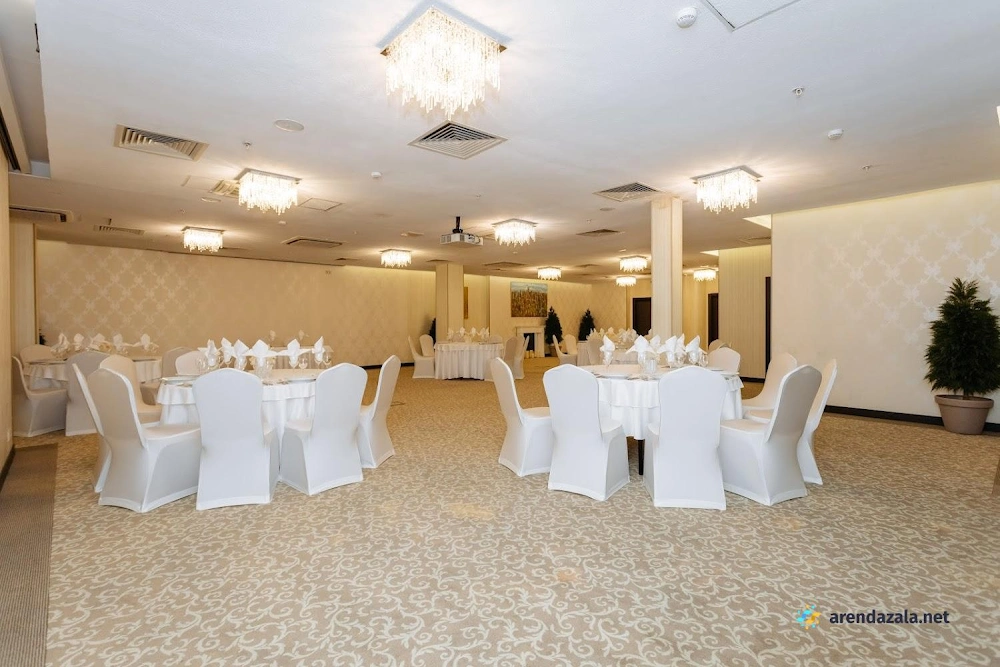 Банкетный зал привлекает гостей красивым белоснежным интерьером, созданным опытными дизайнерами, и профессиональной работой вежливого обслуживающего персонала. Посетители высоко оценивают разнообразное вкусное меню, благодаря которому торжество становится по-настоящему запоминающимся. В уютной атмосфере зала гости с удовольствием веселятся и танцуют, а вместительность помещения позволяет проводить мероприятия как для небольших компаний, так и для многочисленных торжеств.
