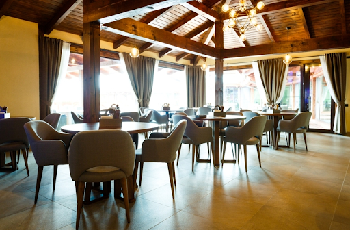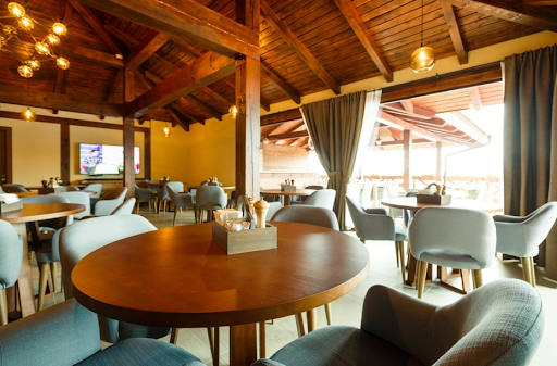 В уютной обстановке зала ресторана гости наслаждаются оригинальной подачей блюд из разных кухонь мира, приготовленных на высоком уровне. Доброжелательный персонал обеспечивает отличное обслуживание, начиная с гардеробной. Посетители отмечают вкусные шашлык, бургеры, вок и пиццу, а также фирменные соусы и теплые, хрустящие круассаны к чаю. Невероятная атмосфера и захватывающие виды делают ресторан одним из лучших в городе, куда хочется вернуться снова всей семьей. Кроме основного зала, есть красивый банкетный зал со сценой.